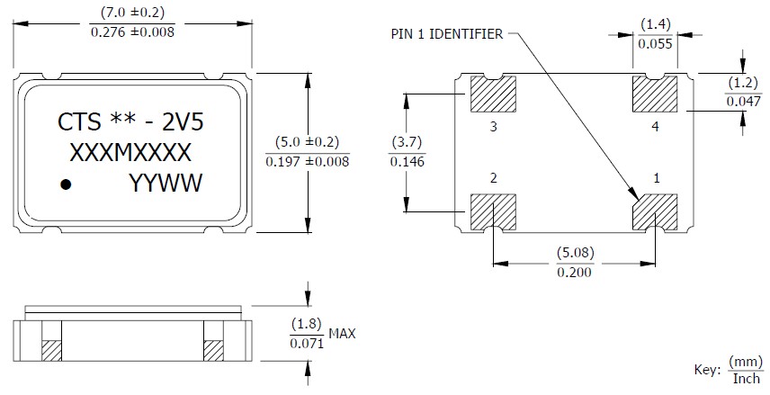 西迪斯晶振,CB2V5石英晶體振蕩器,7050mm有源晶振,小型SMD有源晶振,從最初超大體積到現在的7050mm,6035mm,5032mm,3225mm,2520mm體積,有著翻天覆地的改變,體積的變小也試產品帶來了更高的穩定性能,接縫密封石英晶體振蕩器,精度高,覆蓋頻率范圍寬的特點,SMD高速自動安裝和高溫回流焊設計,Optionable待機輸出三態輸出功能,電源電壓范圍:1.8V~5 V,高穩定性,低抖動,低功耗,主要應用領域:無線通訊,高端智能手機,平板筆記本WLAN,藍牙,數碼相機,DSL和其他IT產品的晶振應用,三態功能,PC和LCDM等高端數碼領域,符合RoHS/無鉛.