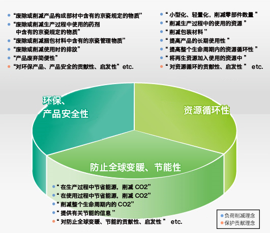 京瓷將“防止全球變暖、節能性”、“資源循環性”、“環保、產品安全性”這3個主題視為最重要的課題,在產品開發階段就明確地設定了相應的環保理念.
