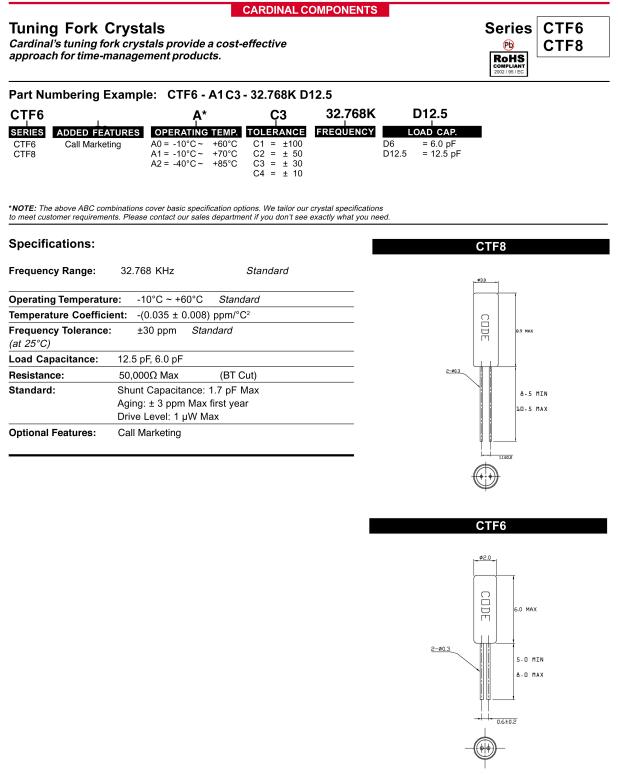 Cardinal晶振,CTF6-A1C3-32.768KD12.5,6G路由器晶振參數(shù)表