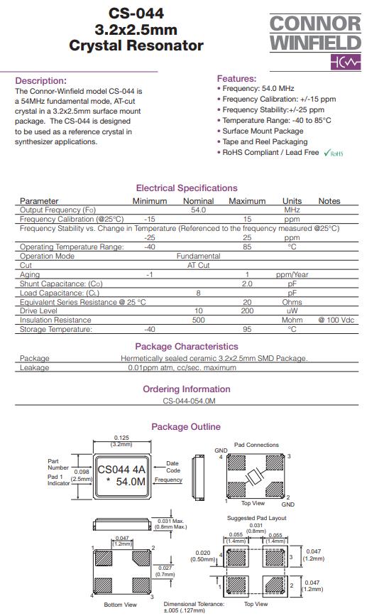 CS-044-054.0M,6G無線網(wǎng)絡(luò)晶振,ConnorWinfield進(jìn)口晶體參數(shù)表
