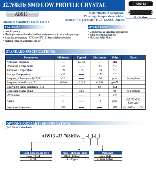 | ABRACON晶振 | 單位 | ABS13晶振 | 石英晶振基本條件 |