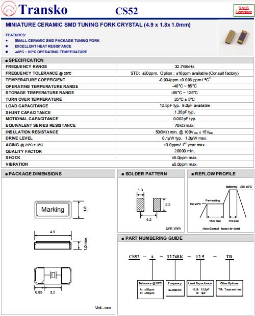 | Transko晶振 | 單位 | CS52晶振 | 石英晶振基本條件 |