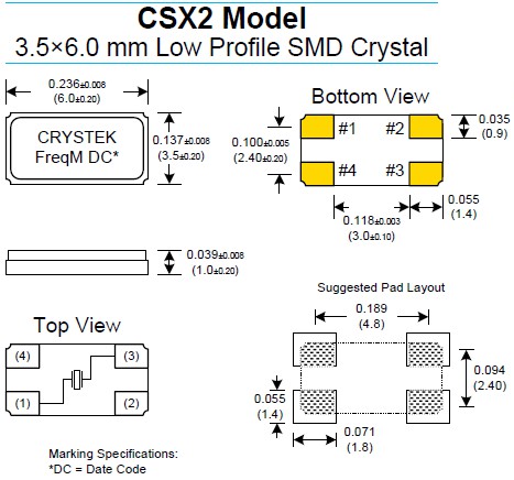CRYSTEK晶振,CSX2晶振,耐高溫石英晶體.普通貼片石英晶振外觀使用金屬材料封裝的,具有高穩定性,高可靠性的石英晶體諧振器,晶振外觀本身使用金屬封裝,充分的密封性能,可確保其高可靠性,采用編帶包裝,外包裝采用朔膠盤,可在自動貼片機上對應自動貼裝等優勢.