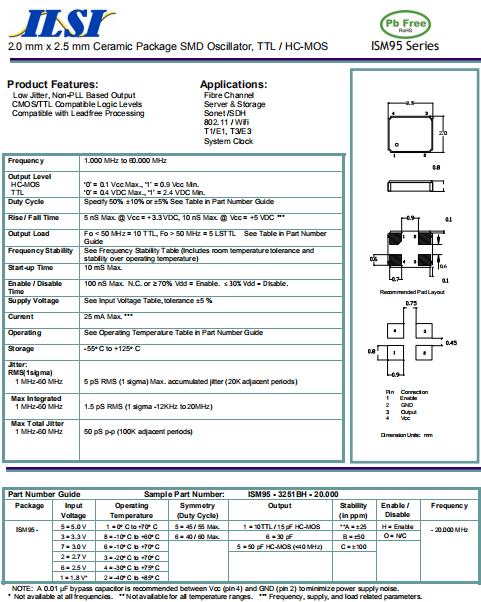 ILSI晶振,ISM95晶振,高質量振蕩器.2520mm體積的晶振,可以說是目前小型數(shù)碼產品的福音,目前超小型的智能手機里面所應用的就是小型的石英晶振,該產品最適用于無線通訊系統(tǒng),無線局域網,已實現(xiàn)低相位噪聲,低電壓,低消費電流和高穩(wěn)定度,超小型,質量輕等產品特點,產品本身編帶包裝方式,可對應自動高速貼片機應用,以及高溫回流焊接(產品無鉛對應),為無鉛產品.