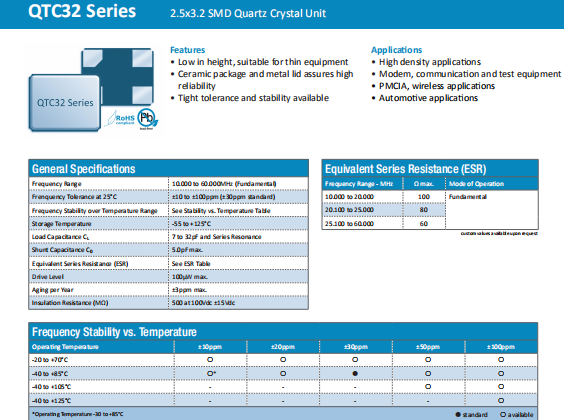 | Quarztechnik晶振 | 單位 | QTC32晶振 | 石英晶振基本條件 |
