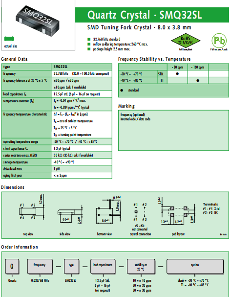 JAUCH晶振,SMQ32SL晶振,壓電石英晶體.超小型,薄型,質(zhì)地輕的表面貼片音叉型晶體諧振器,手機晶體,產(chǎn)品體積小,特別適用于各種小巧的便攜式消費電子數(shù)碼產(chǎn)品,在移動通信領域得到了廣泛的應用,晶振產(chǎn)品本身可發(fā)揮優(yōu)良的電氣特性,滿足無鉛焊接的高溫回流溫度曲線要求.