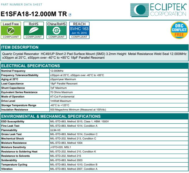 日蝕晶振,E1SFA18-12.000M-TR晶振,49SMD晶振,ECLIPTEK已經實施了中國對危險物質(RoHS)的限制措施,以回應國際社會對鉛(鉛)和其他有害物質在電子部件和組件制造中所使用的有害物質的擔憂。ECLIPTEK公司致力于保護環境,作為負責任的企業公民。ECLIPTEK一直在努力解決電子行業的RoHS和無pb合規問題。我們的目標是逐步消除不兼容產品的使用,為我們的客戶提供符合要求的替代進口晶振產品,以及發布的生命周期的結束,從而提供足夠的時間來批準兼容的產品。
