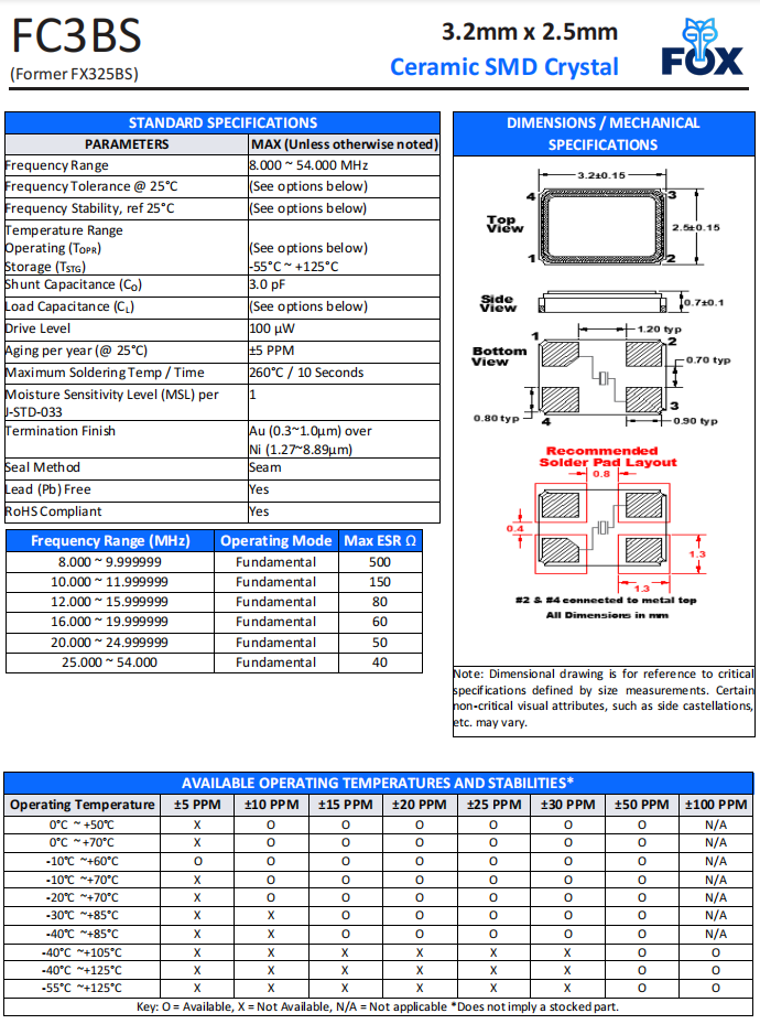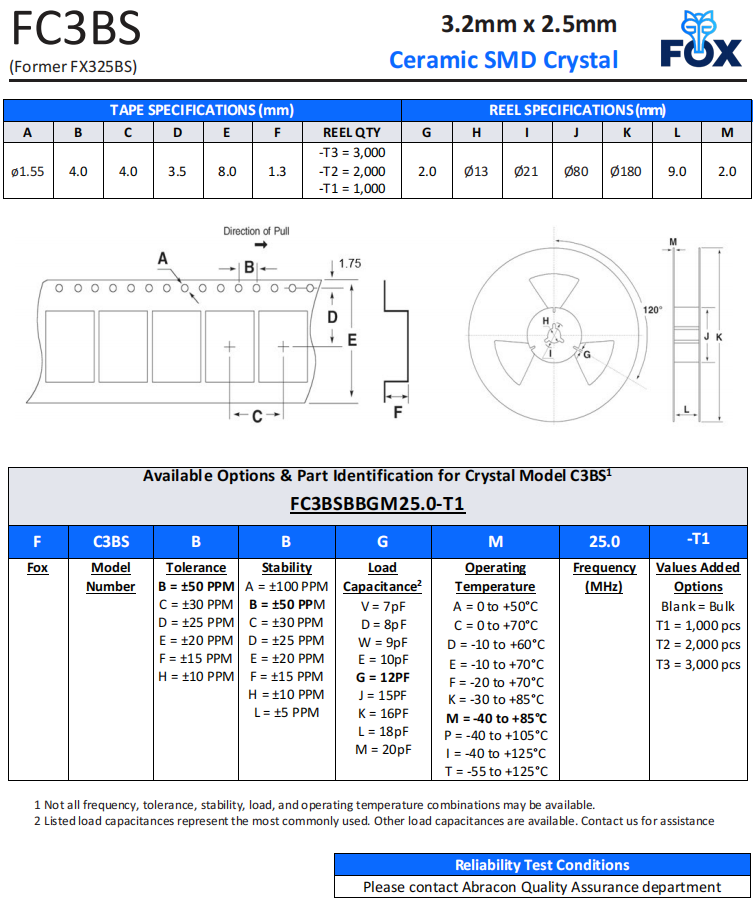 | FC3BSBBMM25.0-T3 | Fox晶振 | FC3BS | 25 MHz | ±50ppm |