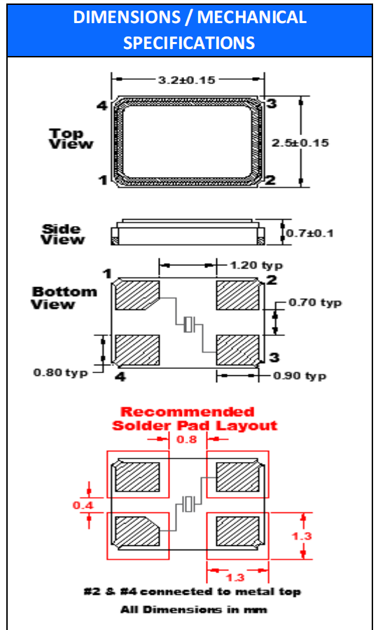 | 尺寸 | 3.2x2.5x0.8mm |