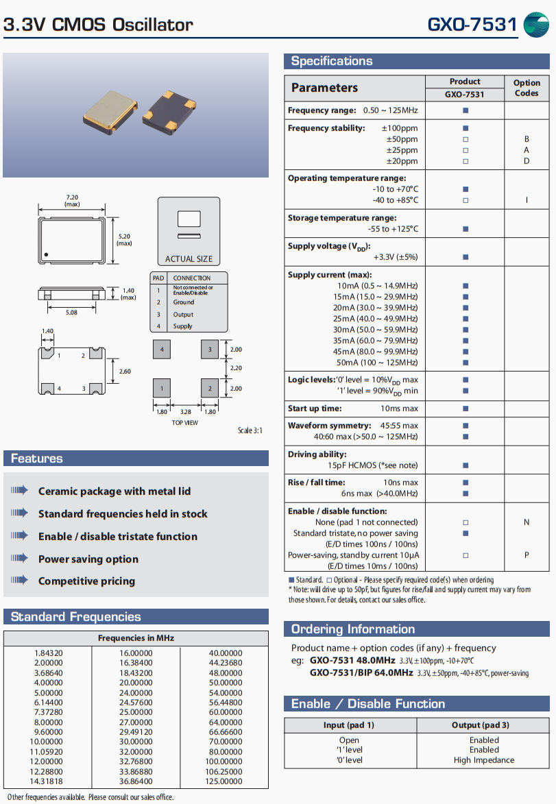 | 頻率穩定度 | ±100ppm,±50ppm,±25ppm,±20ppm |