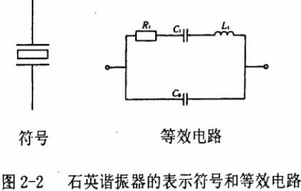石英諧振器的表示符號(hào)和等效電路如圖2-2所示。其中L1為串聯(lián)等效電感,C1為串聯(lián)等效電容,R1為串聯(lián)等效電阻,Co為靜態(tài)電容。當(dāng)石英諧振器沒有振動(dòng)時(shí),就可以等效成一個(gè)平板電容。其電容容量則取決于石英晶片的幾何尺寸和涂敷的金屬電極的尺寸。