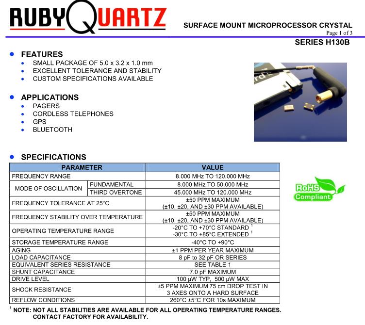 H130B四腳貼片晶振,美國盧柏晶體,H130B-24.000-18-TR諧振器,智能手機晶振,產品具有高精度超小型的表面貼片型石英晶體振蕩器,最適用于移動通信終端的基準時鐘等移動通信領域.比如智能手機,無線通信,衛星導航,平臺基站等較高端的數碼產品,晶振本身小型,薄型具備各類移動通信的基準時鐘源用頻率,貼片晶振具有優良的電氣特性,耐環境性能適用于移動通信領域,滿足無鉛焊接的高溫回流溫度曲線要求