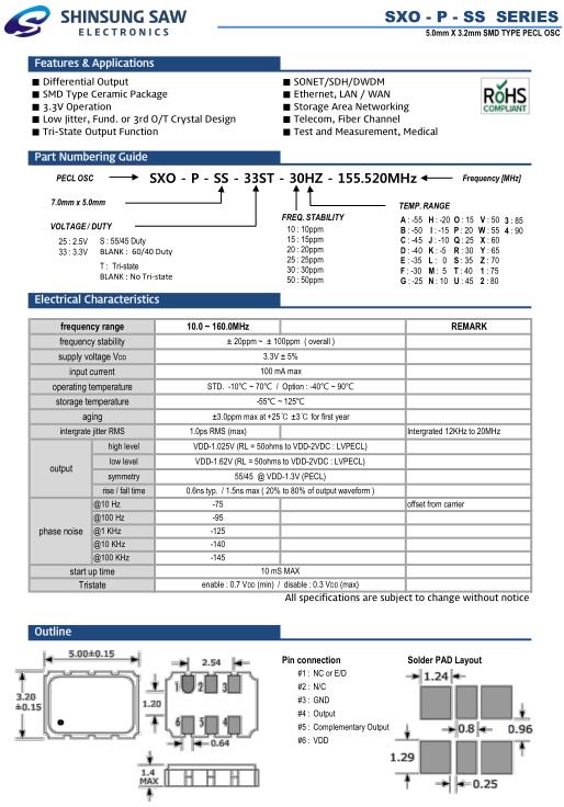 SHINSUNG晶振,SXO-P-SS光纖通道晶振,SXO-P-SS-33ST-30HZ-24.000MHz晶振,5032mm體積的石英晶體振蕩器,有源晶振,該產品可驅動2.5V的溫補晶振,壓控晶振,VC-TCXO晶體振蕩器產品,電源電壓的低電耗型,編帶包裝方式,可對應自動高速貼片機自動焊接,及IR回流焊接(無鉛對應),為無鉛產品,超小型,質地輕.產品被廣泛應用到集成電路,程控交換系統,無線發射基站.