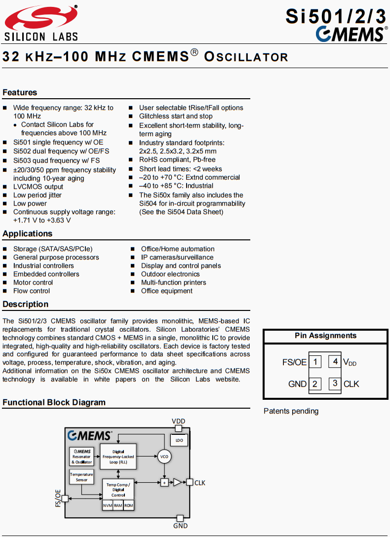 | 501ABA8M00000CAG | Silicon Labs | 8 MHz | LVCMOS | 1.7V ~ 3.6V | ±30ppm | -40°C ~ 85°C |