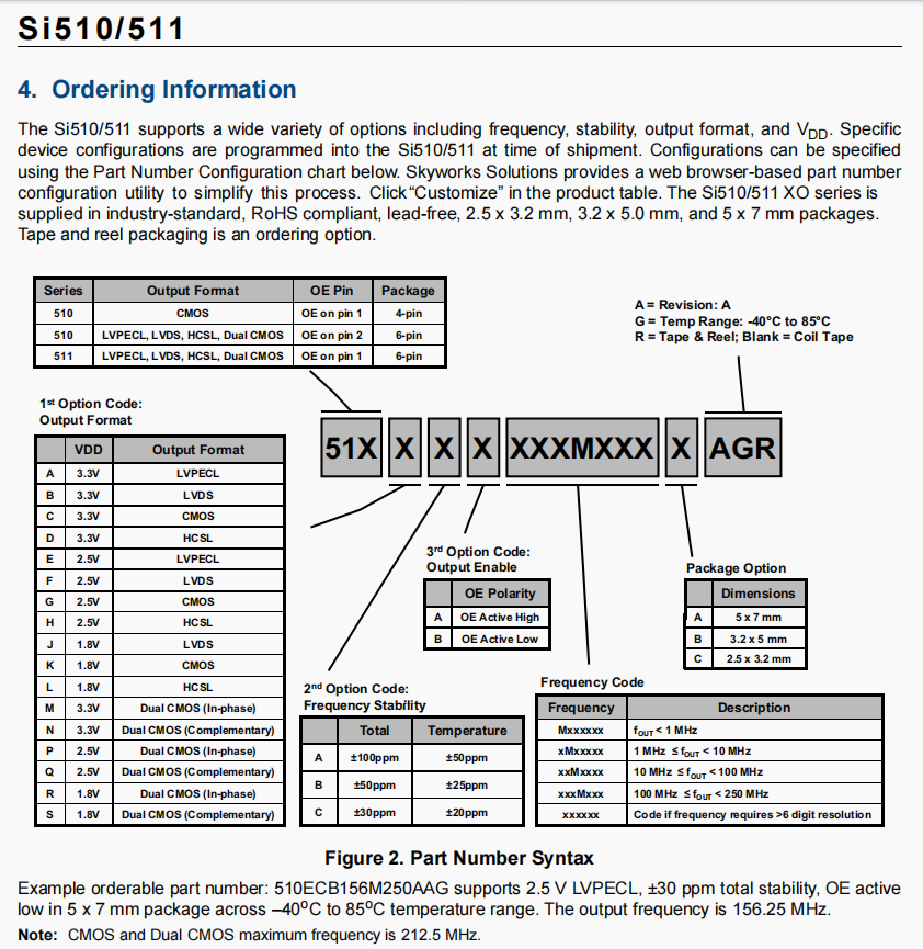 | 511ABA156M250BAG | Skyworks晶振 | Si511 | XO | 156.25 MHz | LVPECL | 3.3V | ±25ppm |