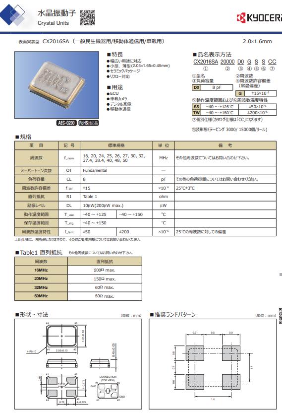更多>>京瓷輕薄型的貼片晶振可滿足車載相機的需求CX2016SA20000D0GSSCC