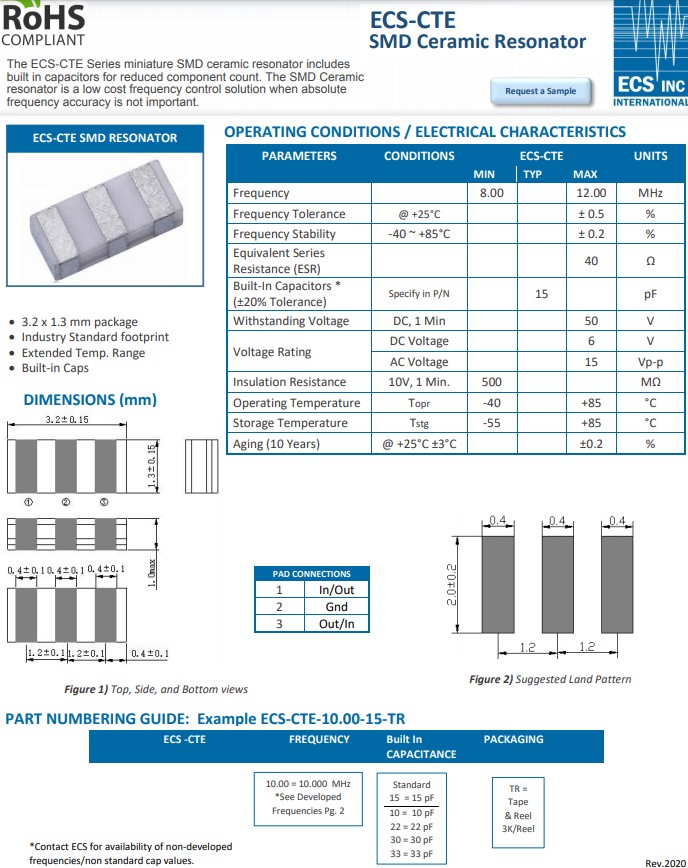 更多>>ECS-CTE-10.00-15-TR是復印機和遙控器等低成本應用的理想選擇