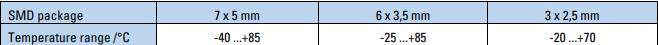 對于通常的時鐘應用,對石英晶體振蕩器沒有特殊要求。情況不同了,然而,當發射器和接收器必須相互調諧時,例如藍牙的情況。對于使用晶體的電路,藍牙需要特別窄的公差(+/- 20ppm)的技術限制,振蕩晶體正好是這個規格(即+/- 10ppm在25°C加上+/- 10ppm在溫度范圍內)。甚至雖然該技術在不斷發展,但仍能在有限程度上達到所要求的公差小尺寸,如表1所示。