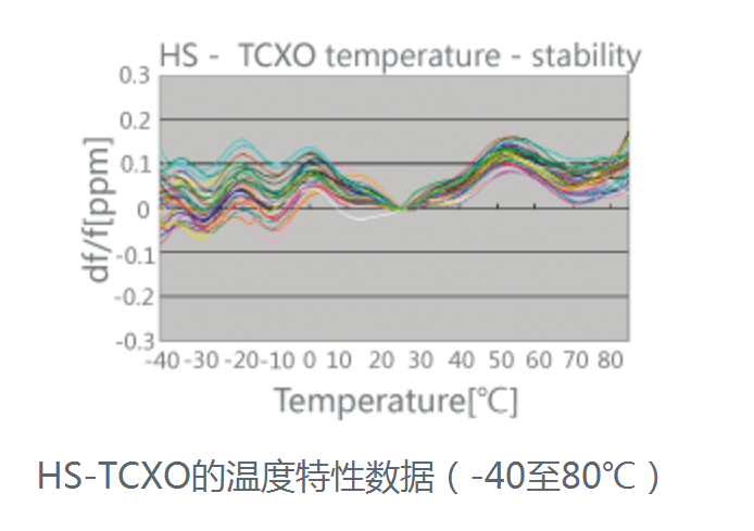 在村田,通過集成電路化技術開發了能得到高次函數溫度補償的溫度補償電路(根據補償電壓改變晶體諧振器的負荷量)和組裝了振蕩電路的單芯片TCXO用集成電路。此外,還利用模擬技術做出最恰當的坯料設計,開發了無頻率陷落的諧振器。HS-TCXO在綜合這些技術確保高精度的溫度特性的同時,實現了不亞于OCXO的小體積和低耗電。