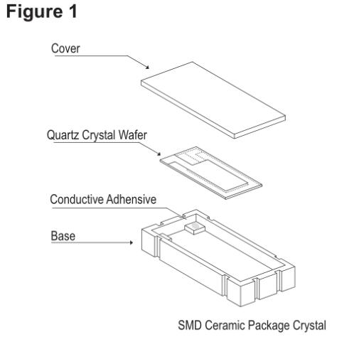 石英晶體單元包括一小條石英帶或一盤石英,根據(jù)用戶指定的諧振頻率,將其加工成確切的尺寸和厚度。石英鍍有導(dǎo)電電極,并安裝在密封的保護罩中(見圖1)。