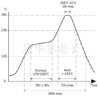 | 焊接條件 | 回流,260℃,最長(zhǎng)20秒 |