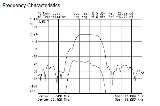 | Insertion attenuation 37.40 MHz | 11.5 | 13.5 | 15.5 | dB |