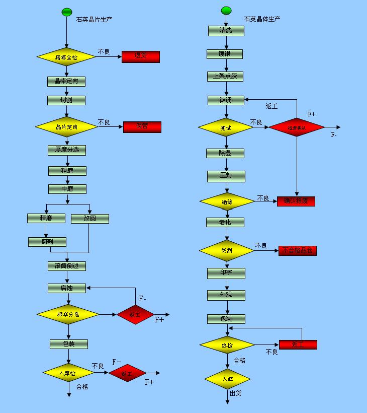 康華爾的晶振從產(chǎn)品晶片制作而成的第一步說起,人工培植石英晶體,在經(jīng)過高壓釜人工種植石英晶棒,取出晶棒,首先對晶棒定向,在對晶棒切割,在把切割下來的晶片定向,在對石英晶片的厚度分選,對晶片的粗磨,在對晶片的中磨,在精細(xì)磨,對晶片改園,切割磨邊,滾筒道邊,對晶片腐蝕,在對晶片頻率分選,早期晶片頻率分選都是靠人工,現(xiàn)在都是投入機(jī)器自動分選了,經(jīng)過這么多道復(fù)雜的工序,這樣晶片的制作算是全部完成了。我們在來看看對石英晶振的成品生產(chǎn)過程,首先對晶片清洗,在對晶片鍍銀,上架點(diǎn)膠,在對晶片進(jìn)行微調(diào),測試,除濕,壓封,絕緣,老化,老化完之后在測試,激光印字,包裝,在經(jīng)過這些工序之后,這樣就算是一顆完整的石英晶振了,在將常規(guī)的石英晶振加工制造成為SMD形的貼片晶振。