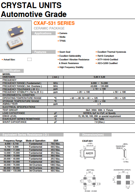 首頁臺產(chǎn)晶振AKER晶振,貼片石英晶體,CXAF-531臺灣晶振